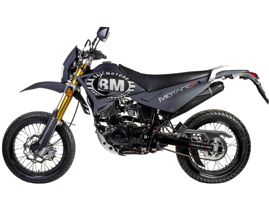Этот мотоцикл относится к классу SUPERMOTO, совмещая в себе характеристики эндуро и дорожного мотоцикла. Мощный четырехтактный двигатель произведённый по лицензии «Suzuki» в сочетании с 5-ступенчатой коробкой передач позволит легко и быстро передвигаться по городу, а усиленная подвеска класса ENDURO, в сочетании с дисковыми тормозами и усиленными ребрами жесткости 17-дюймовыми колесами - позволит преодолевать «городские джунгли» не только по дорогам общего пользования. Бордюры и ступеньки Вам теперь не помеха. Почувствуйте себя уличным «хулиганом».